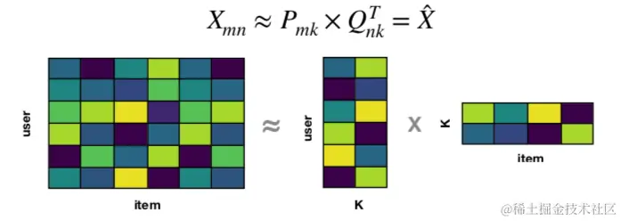 潜因子这里用K表示。此重建矩阵填充原始的用户-物品矩阵中的空单元格,因此未知评级现在已知。\