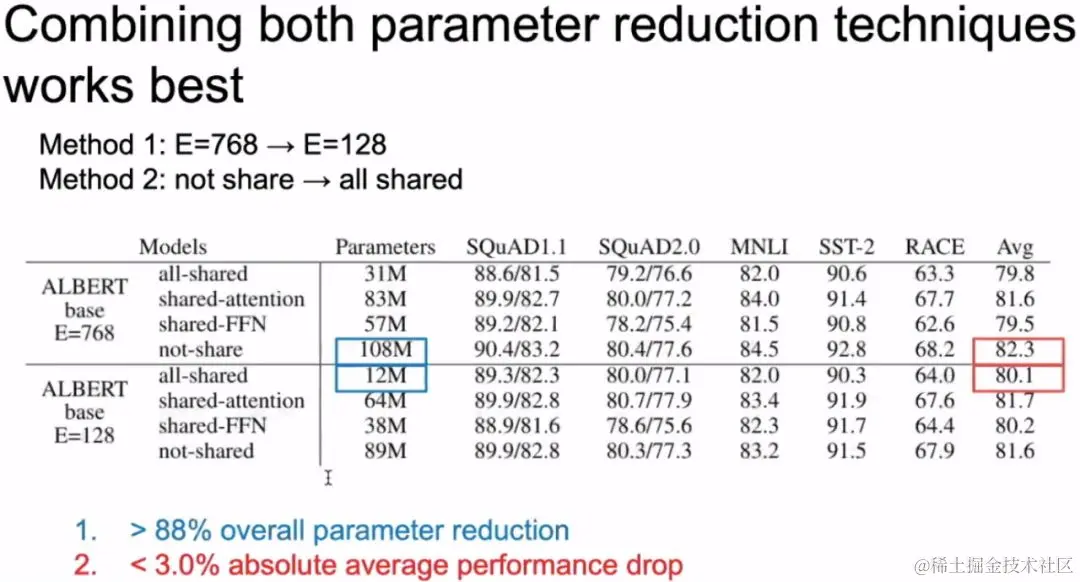 ALBERT的创新点如下图: