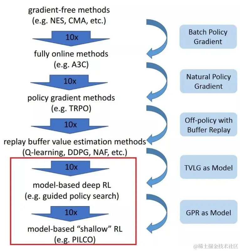 通过 Recht 的分析,我们似乎找到了 DRL 问题的根结。近三年在机器学习领域大火的 DRL 算法,多将免模型方法与 DL 结合,而免模型算法的天然缺陷,恰好与 Alexirpan 总结的 DRL 几大问题相对应(见上文)。