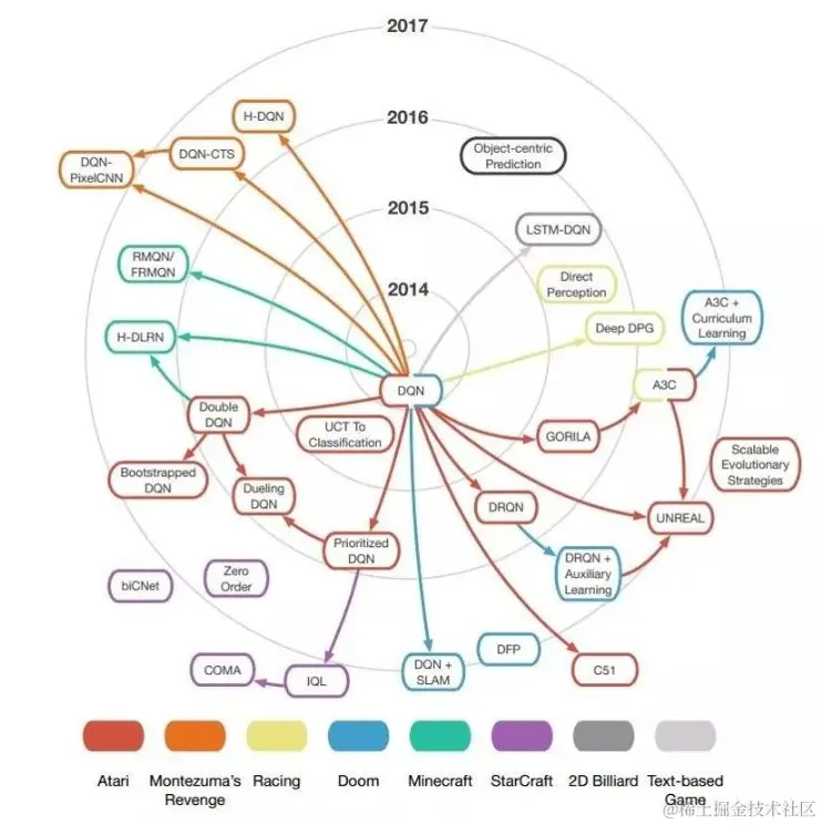 绝大多数 DRL 方法是对 DQN 的扩展,属于免模型方法 [20]