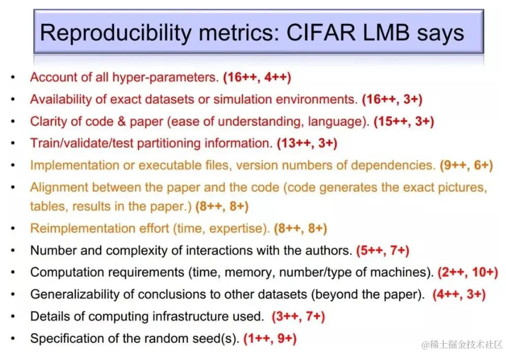 Pineau 基于大量调查提出的检验算法“可复现性”准则 [11]