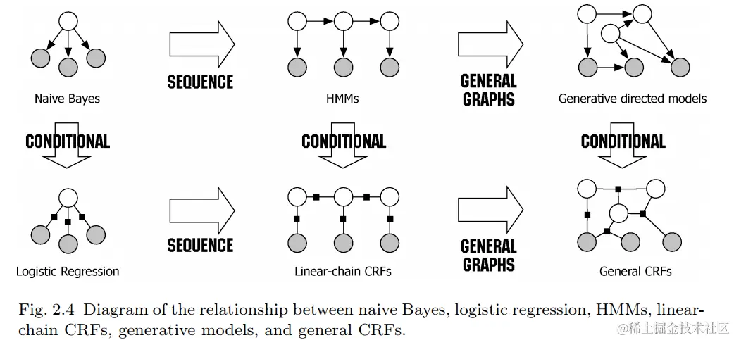 之后我们就可以直接套用统计机器学习模型来训练出一个分词器啦。统计序列标注模型的代表就是生成式模型的代表——隐马尔可夫模型(HMM),和判别式模型的代表——(线性链)条件随机场(CRF) 。已经对这两个模型很熟悉的小伙伴可以跳过。