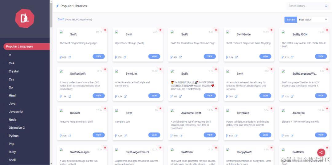 使用 lib4dev 可以查找任何编程语言的最佳库,它界面简单,基本上所有编程语言的库和开源项目都可以在上面找得到。