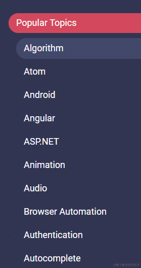 除了按照编程语言来分,还提供了主题划分,例如算法、安卓、构建工具等等。\