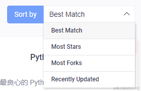 例如,我们选择 Python 语言。在页面右上角可以根据不同属性进行排行,方便我们获取最想要的开源项目。