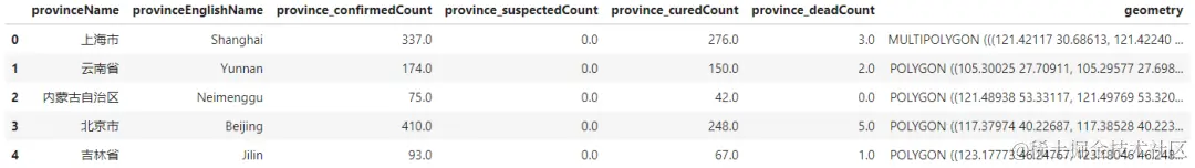 因此使用geopandas地理操作中的融合dissolve()按照OWNER列融合分离的面为多面,从而使得每一行是对应的完整的省份,关于更多地理操作将会在后续的对应的文章介绍。