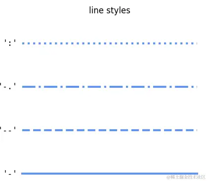 其中线型参数linestyle与matplotlib完全一致,不同选择对应样式如图5: