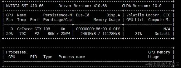 watch -n 10 nvidia-smi # 查看 GPU 使用情况,每 10s 刷新一次,可以设置小一点,如 0.1 可以实时刷新