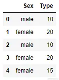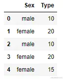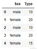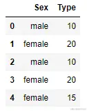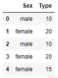 train_set = pd.DataFrame(np.array([['male',10],['female', 20], ['male',10],