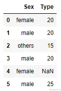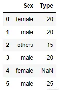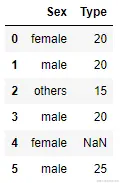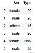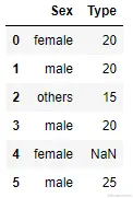 test_set = pd.DataFrame(np.array([['female',20],['male', 20], ['others',15],