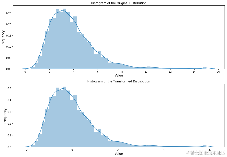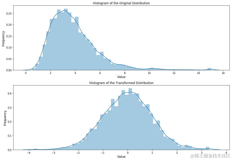 ax[1].set_title('Histogram of the Transformed Distribution', fontsize=12)