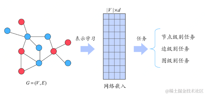 2. 为之后的学习任务奠定基础。图数据的学习任务种类繁多,有节点层面的,边层面的,还有全图层面的,一个好的图表示学习方法可以统一高效地辅助这些任务的相关设计与学习。