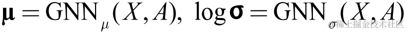 与 VAE 不同的是,这里我们使用两个 GNN 对 μ、σ 进行拟合: