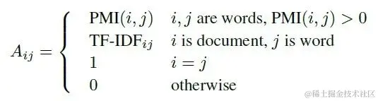 point-wise mutual information(PMI) 是一个很流行的计算两个单词关系的算法。我们可以用它来计算两个单词节点的权重。节点 i 和节点 j 的权重计算公式如下: