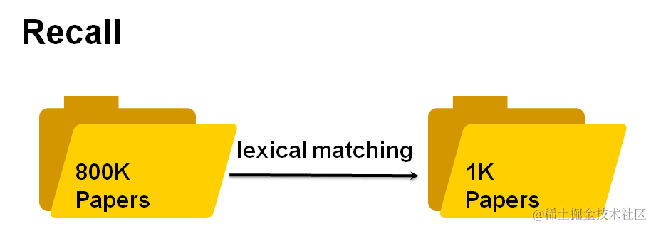 - 召回阶段:通过无监督方式(例如BM25或文档嵌入相似性)从整个候选文档数据库中检索设置给定问题的候选集。