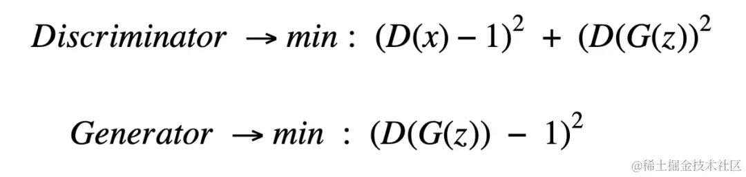 由Xudong Mao, et al (2016)提出,当生成的图像与真实图像非常不同时,这种损失函数特别有用,因为此时会导致梯度非常小或梯度消失,进而导致模型很少或没有更新。