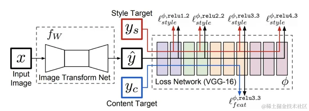 考虑一个图像分类网络如VGG,已经在ImageNet的数以百万计的图像数据集上训练过,第一层的网络往往提取底层的特征(如线,边缘或颜色渐变)而最后的卷积层应对更复杂的概念(如特定的形状和模式)。根据Johnson等人的观点,这些在前几层捕获的低层次特征对于比较非常相似的图像非常有用。