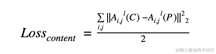 同样,通过计算预测图像(P)和风格图像(S)的下一级特征图的L2距离,可以计算出风格损失,得到的损失函数定义为:\