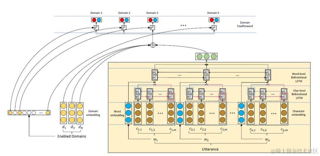 了解domain-embedding的概念,也就是图中的左下方。简单理解domain-embedding其实和word-embedding是一个意思,只不过这里的“词表”对应你有多少个Domain,向量具体如何得出不做展开【详见Reference 3】,只需要记住它是一个类似word-embedding的参数矩阵就好。