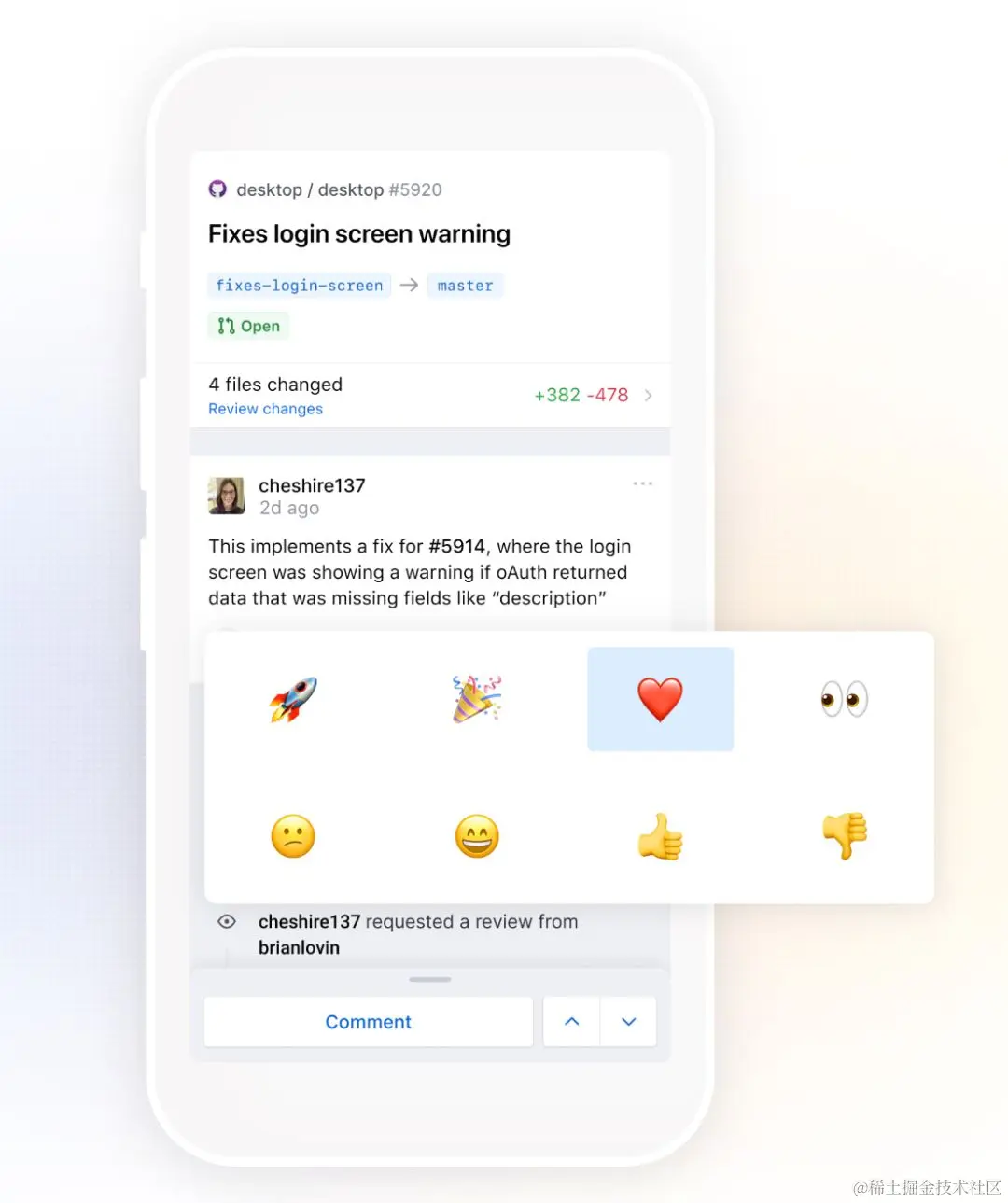 2、处理 Issues 信息: 提供反馈并回答问题,用户可在 App 进行反馈和回复评论,还支持用表情符号作出回应。