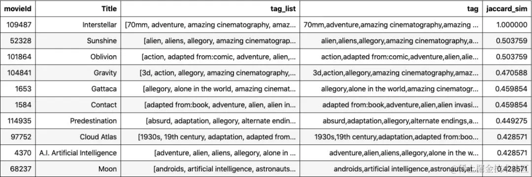基于Jaccard Index的标签集的类似Interstellar的电影\