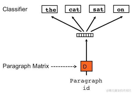 Doc2Vec论文中对PV-DBOW技术的可视化,对于每个段落ID (movie),我们训练一个模型来预测该段落中某个单词(movie tag)的共现性\