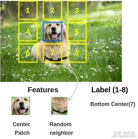 现有工作一般是将图像中物体所在区域切分成 9 个 Patch,记录 8 个 Patch 与中心 Patch 的相对位置关系(如下图,1 对应左上)。