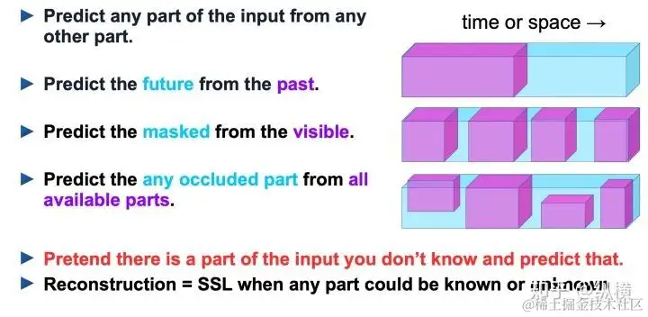 目前自监督学习的发展已经远超 LeCun 当时的总结,异彩纷呈~这里介绍一些常用的先验知识学习方法: