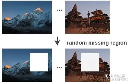 第一种,要想学习物体的内容信息作为下游模型的先验知识,我们只需要在原图的基础上剔除某块物体或区域,只保该留物体或区域的上下文,并训练模型根据上下文重构原图。这种策略在 Image Inpainting 任务中很常见。