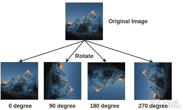 现有工作一般对图像进行 0、90、180、270 度的旋转,生成新图像并记录对应的旋转角度。