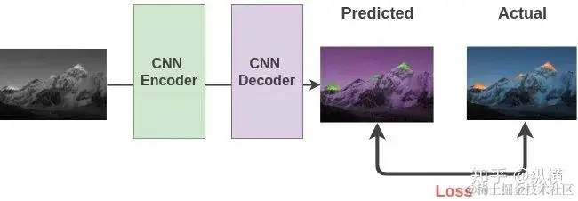 之后使用 Auto-Encoder 模型,将灰度图作为输入重构彩色图。在训练时,将重构的彩色图与原图的 MSE(L2 距离)作为损失函数,优化 Auto-Encoder 。