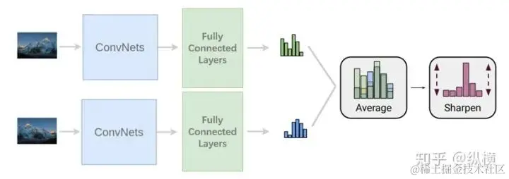 为温度参数,一般为 2。锐化的实现也很简单,却能有效地获得低熵预测,增强模型对预测结果的自信度:
