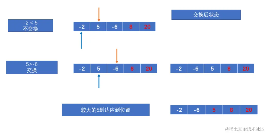 (4) 20 > -6 需要发生交换\