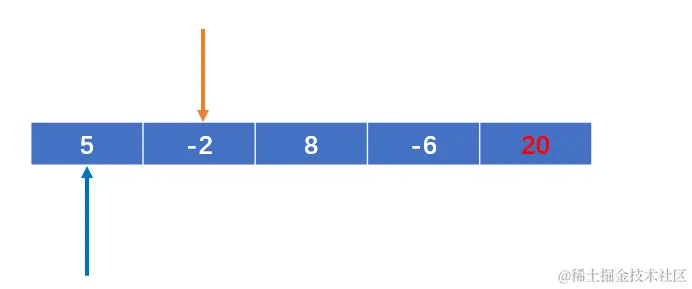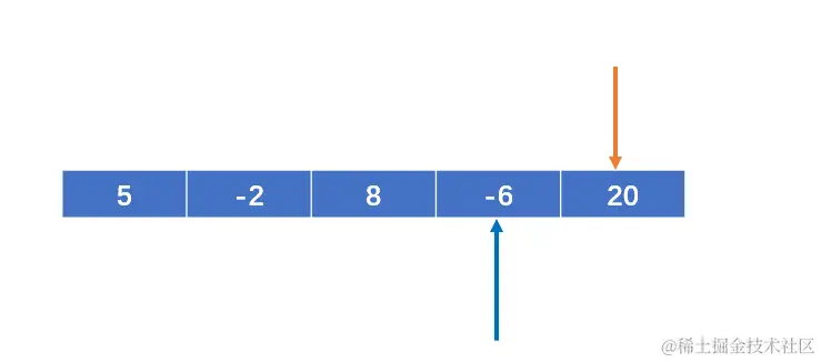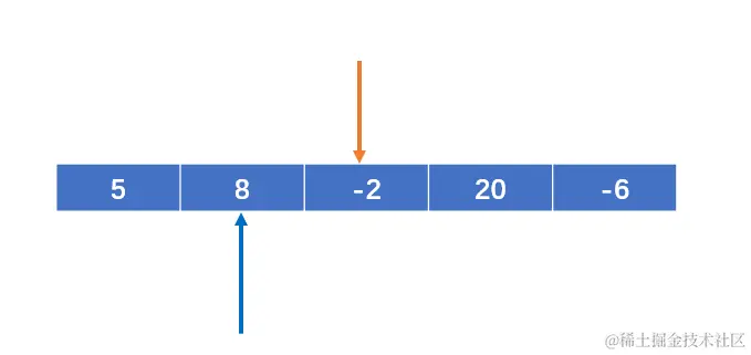 定义两个变量 i 和 j,初始状态 i 存第一个元素的索引,j存i代表元素的下一个元素的索引;