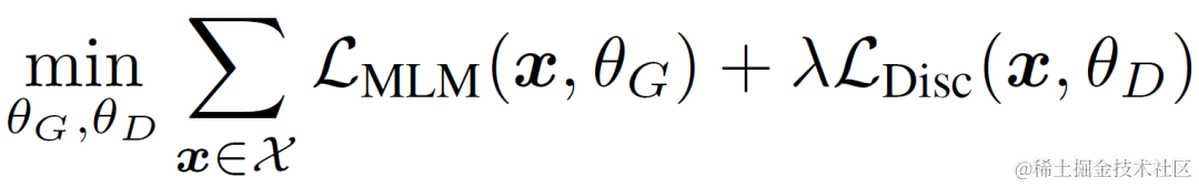 Replaced token detection的优化目标函数为: