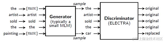 语言模型预训练任务replaced token detection包含两个步骤: