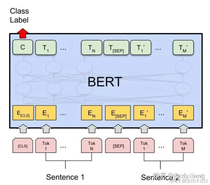 BERT 类模型的使用方法是预训练 + finetune,为方便理解,放一张简图: