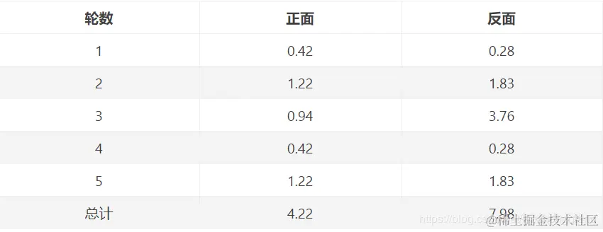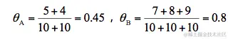 这样,每一轮实验,我们会求出这样一个表来,分别有A和B的概率:然后,我们在结合着统计结果,