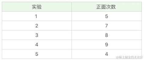 抛硬币大家都玩过吧,假设我们有 A 和 B 两枚硬币,我们做了 5 组实验,每组实验投掷 10 次,每次只能只有A或者B一枚硬币。那么我们统计出现每组实验正面的次数,实验结果如下:我想问你,你知道,A硬币和B硬币各自正面朝上的概率吗?