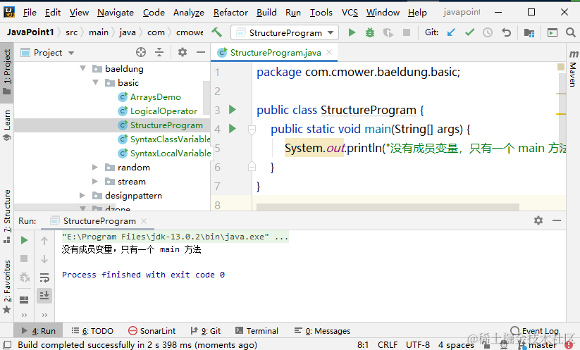 - 类名叫做 StructureProgram,在它里面,只有一个 main 方法。