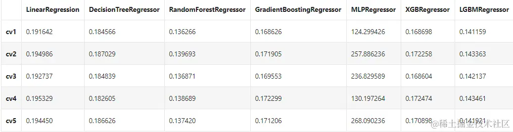 result = pd.DataFrame(result)result.index = ['cv' + str(x) for x in range(1, 6)]result