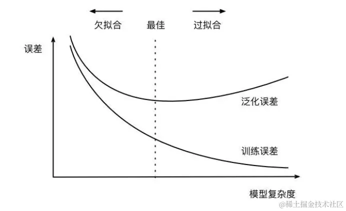 模型复杂度太低(参数过少),模型学习得太少,就难以训练出有效的模型,便会出现欠拟合。模型复杂度太高(参数很多),即模型可训练空间很大,容易学习过度,甚至于也将噪声数据学习了,便会出现过拟合。\