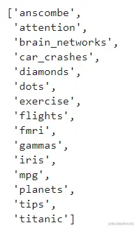 seaborn内置了十几个示例数据集,通过load_dataset函数可以调用。\