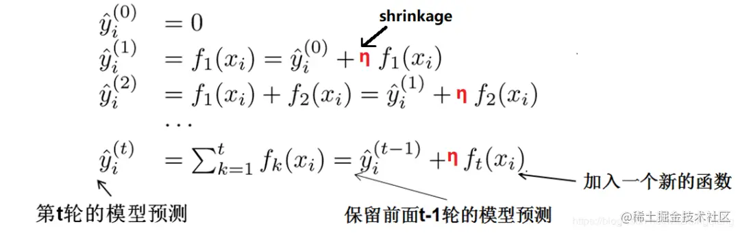我们知道, boosting模型是前向加法, 以第t步模型为例, 模型对第i个样本 的预测为: