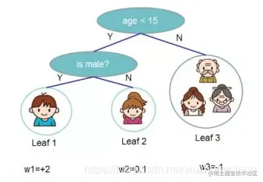 那么为啥要讲GBDT呢? 我先卖个关子,不妨先看一下xgboost是怎么解决问题的。这里用xgboost原作者陈天奇的讲座PPT中的那个图来看假设我想预测,这一家子人中每个人想玩游戏的意愿值。我们用xgboost解决这个问题,就是我先训练出来第一棵决策树, 预测了一下小男孩想玩游戏的意愿是2, 然后发现离标准答案差一些,又训练出来了第二棵决策树, 预测了一下小男孩想玩游戏的意愿是0.9, 那么两个相加就是最终的答案2.9。这个其实就接近了标准答案。所以xgboost是训练出来的弱分类结果进行累加就是最终的结论。