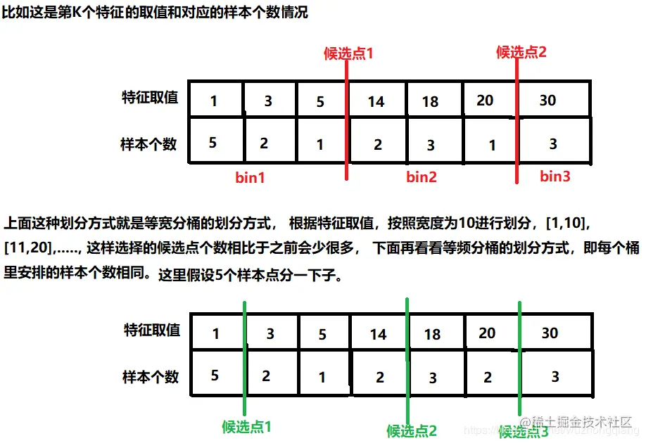 那么在叶子节点分裂成树的过程中最关键的一个问题就是应该在哪个特征的哪个点上进行分裂,也就是寻找最优切分点的过程。
