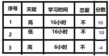 假设我想预测学生考试分数, 给定若干个学生属性(比如天赋,每天学习时间,是否谈恋爱等),