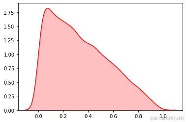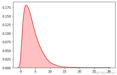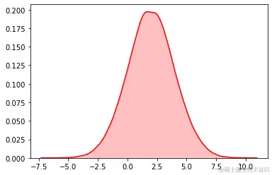 sns.kdeplot(data, shade=True,color="#FF0000")