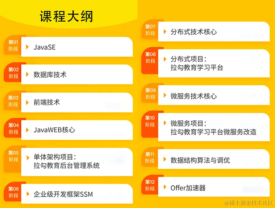 说到这,我真诚的给你推荐拉勾教育的课程了,大家知道,拉勾深耕招聘领域多年,在“人岗匹配”的过程中,发现很多人才的知识能力体系与企业的用人需求存在偏差。为了解决这个问题,拉勾教育团队历经 12 个月的精心打磨,推出 《0基础 Java 就业训练营》 。