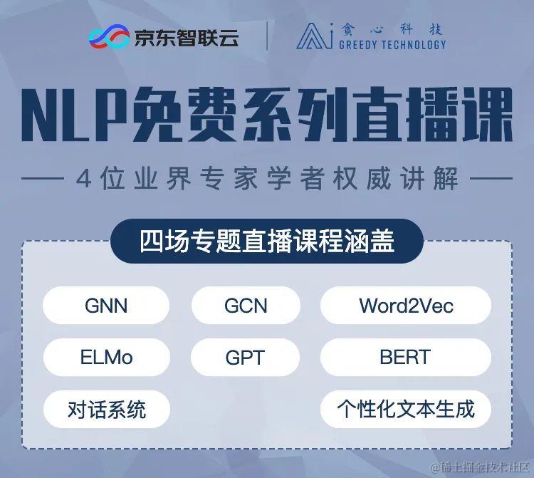 大家好,我是贪心学院的小编。自从今年二月份举办的火爆的BERT、XLNet专题课以来,已经三个月没有跟大家见面了。这一次我们又给大家带来了重磅级的系列公开课,由贪心学院和京东智联云联合打造,共四次公开课、为期两周时间, 感兴趣的朋友们可以扫码加入。